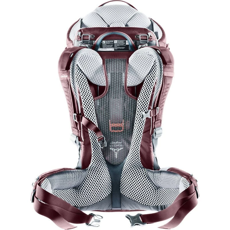 Le porte-bébé Deuter Kid Comfort bordeaux + pare-soleil en détail :
