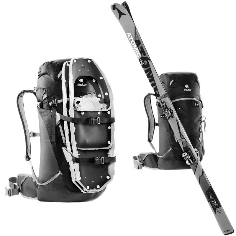 Effectivement léger, le sac à dos Deuter Rise Lite 28 ne pèse que 1180 g. Très complet, il ne lui manque rien : il a 6 compartiments de rangement et autant de porte-matériels (porte-skis, porte-snowboard, porte-raquettes et porte-bâtons), il a un dos confortable avec des coussinets ergonomiques bien matelassés et bien aérés (3D AirMesh). Dans le rabat, on trouve 2 compartiments fermés par un zip (1 compartiment sur le dessus du rabat et 1 compartiment sur le dessous du rabat). Sous le rabat, on trouve 1 grand compartiment : c’est le compartiment principal et il comprend un sous-compartiment imperméable pour ranger des vêtements humides ou pour stocker une poche à eau. Sur l’un des deux côtés, on trouve 1 petit compartiment ouvert avec lanière de sécurité. Sur la ceinture au niveau de l’un des stabilisateurs, on trouve 1 petit compartiment avec zip pour les objets que l’on utilise souvent. Sur la partie avant du sac à dos, on trouve 1 beau compartiment frontal pour le matériel de sécurité (par exemple). Tout est bien à l’abri : le Rise Lite 28 Deuter est revêtu d’un tissu déperlant tandis que le fond du sac est doublé pour un maximum de durabilité. Bon à savoir : un sifflet de survie est inclus au niveau de la sangle de poitrine.