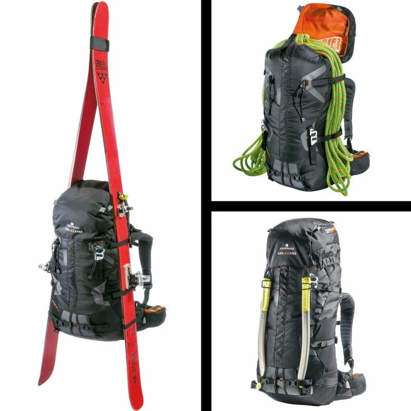 Le sac Ferrino XMT 60+10 a presque le même nombre de porte-accessoires et de poches : 10 porte-matériels et 8 poches. On peut donc s’imaginer charger le XMT autant à l’intérieur qu’à l’extérieur. À l’extérieur, vous pouvez prévoir aussi bien 40 mètres de corde d’alpinisme, 2 grandes gourdes ou une tente de bivouac mais aussi une paire de skis de randonnée, des piolets et des bâtons de trekking. À l’intérieur du XMT, vous pouvez stocker jusqu’à 70 litres d’affaires de tout genre. Les 8 poches sont suffisantes pour une répartition intelligente de votre matériel, à commencer par la poche principale (équipée d’un sous-compartiment pour une poche à eau) dans laquelle vous mettrez la majeure partie de votre équipement. À la poche principale s’ajoutent les 3 poches zippées dans le rabat (dans lesquelles vous stockerez tout le matériel de secours, votre lampe, votre couteau de poche et de nombreux autres objets), les 2 poches extensibles sur les côtés et la petite poche zippée sur la ceinture (pour l’énergie ou un téléphone). Bon à savoir : la ceinture pectorale est équipée d’un sifflet d’urgence pour alerter les secours.